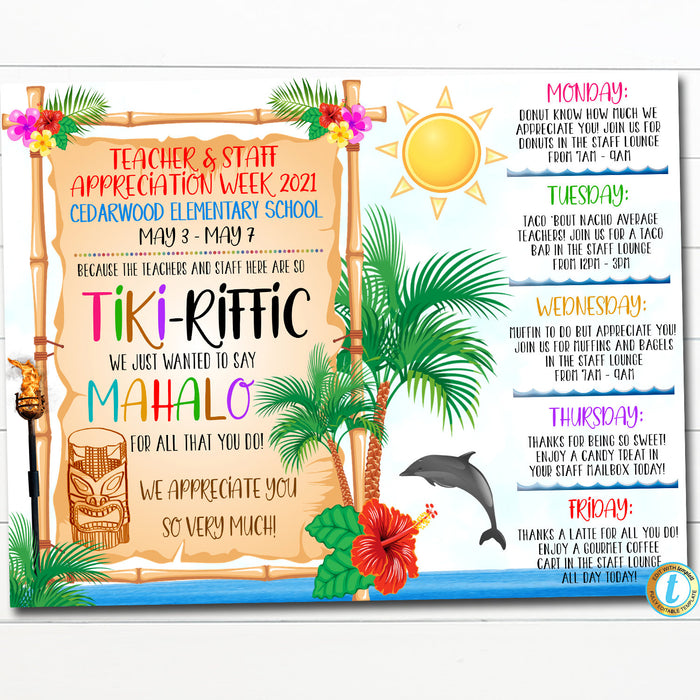Source : www.hsdb.k12.hi.usEDITABLE Hawaiian Themed Teacher Appreciation Week Itinerary Beach