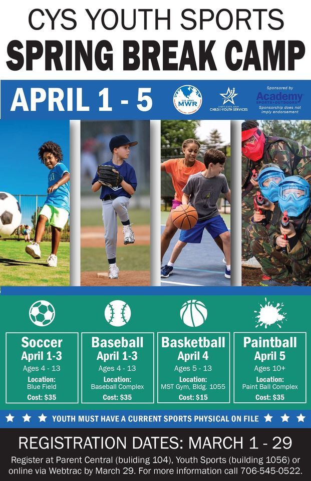 Source : www.facebook.comSPRING CAMP REGISTRATION , Fort Moore CYS, Fort Benning, March 1